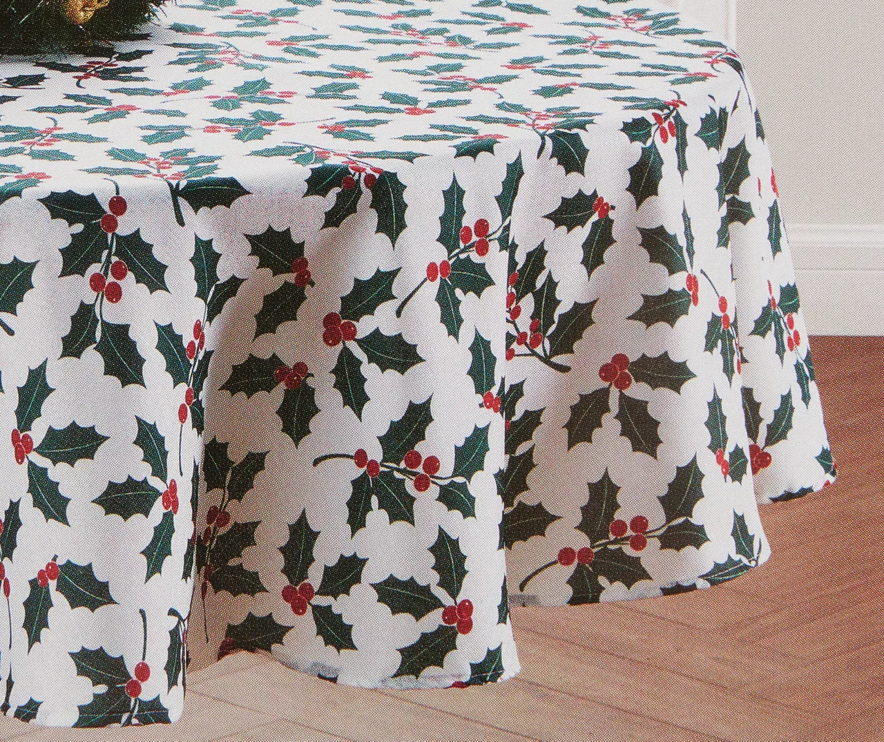 - Bright holly pattern in green and red