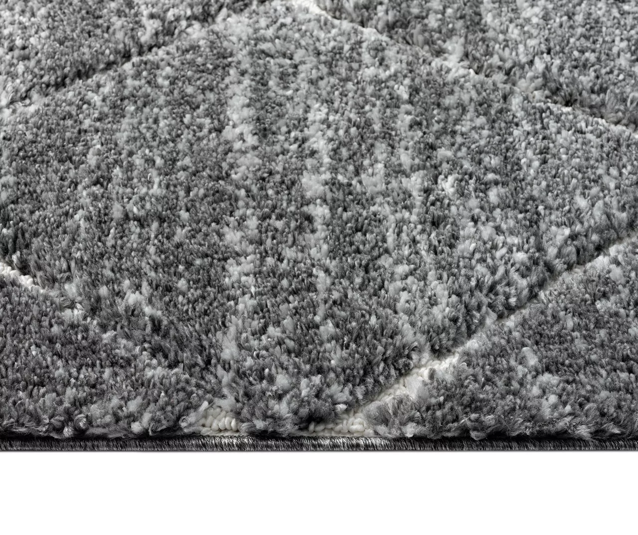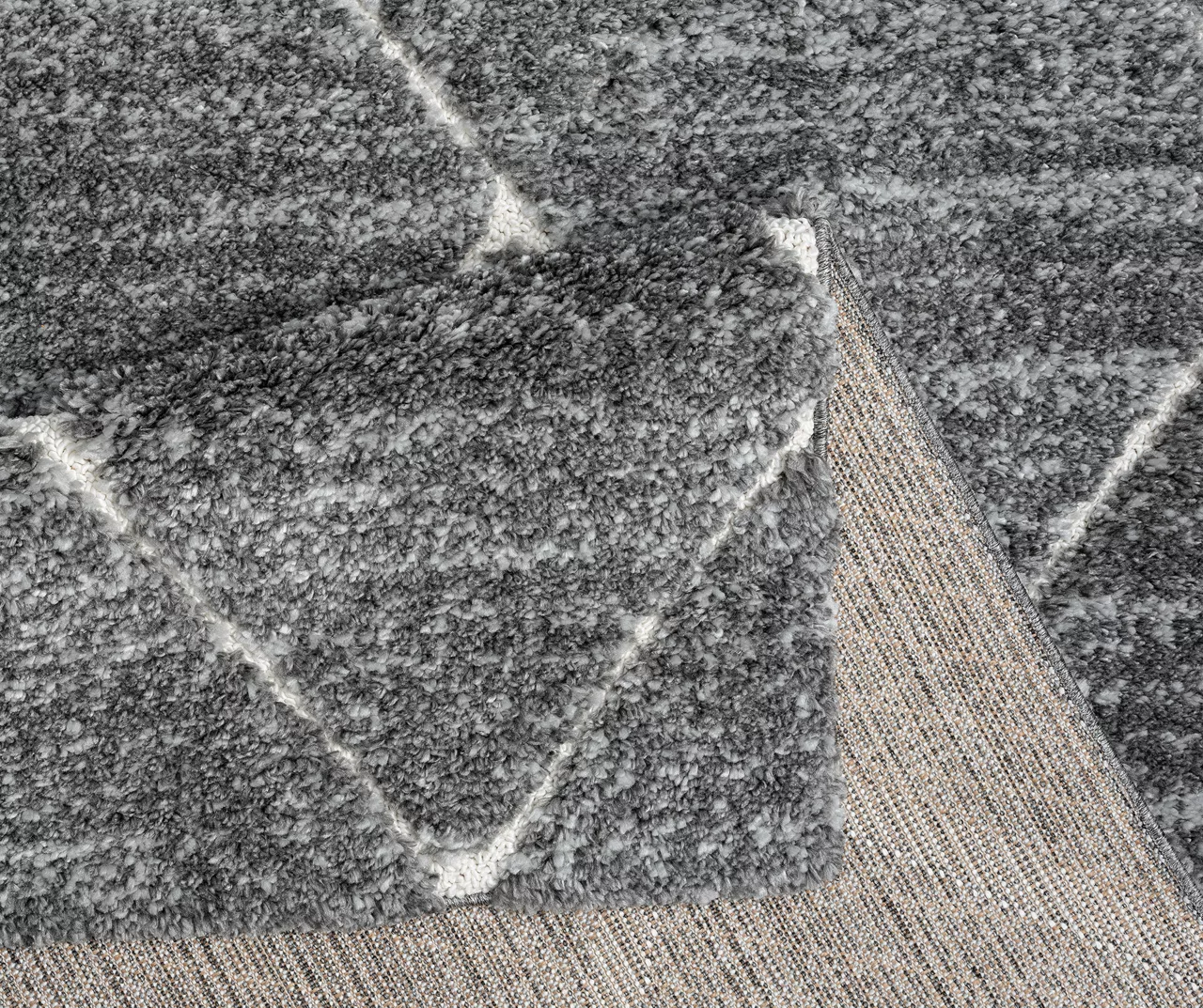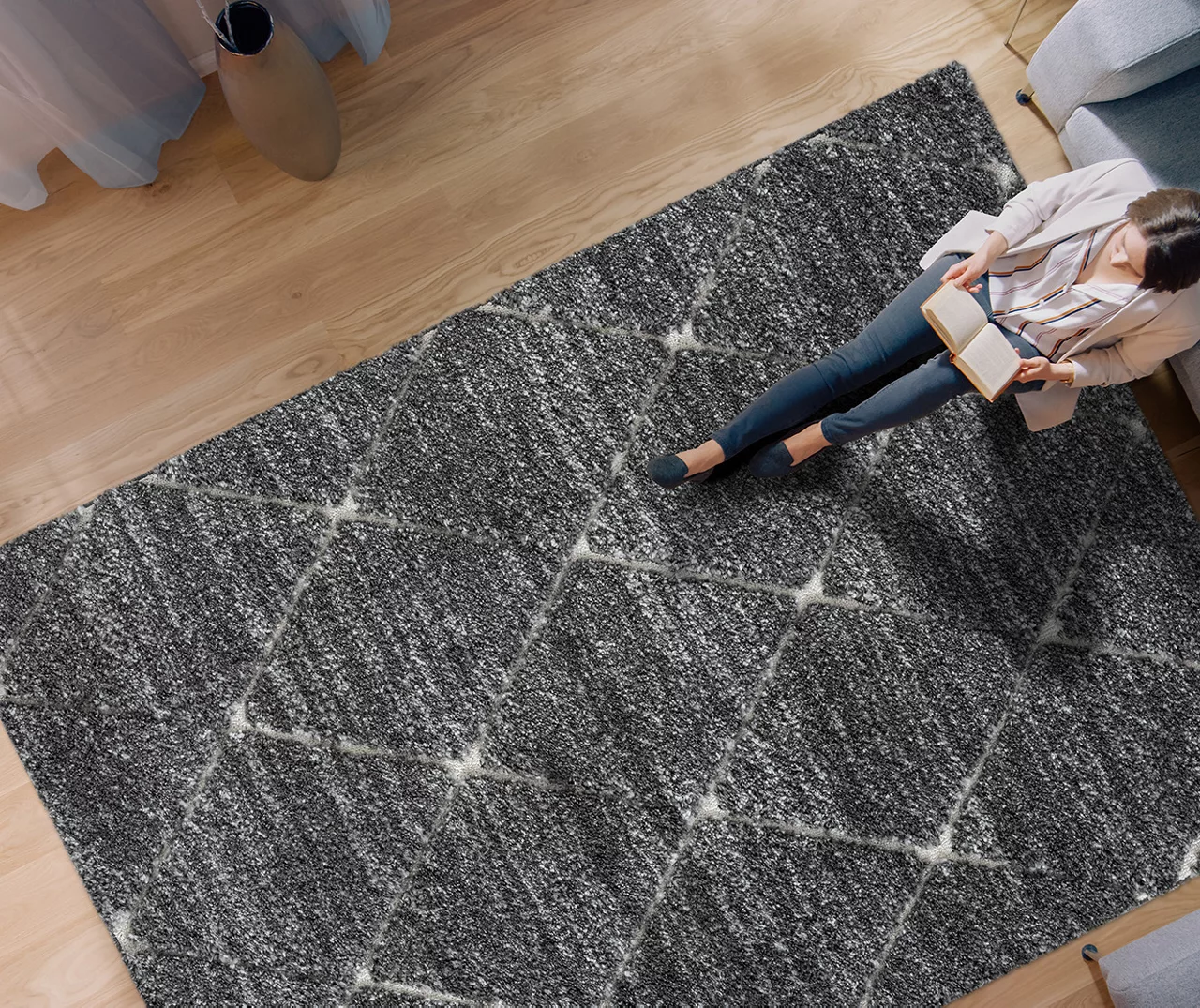 Bring a soft and elegant touch to your home decor with the Sophie Talas area rug. This machine-woven, plush rug features a high pile construction with a gray and cream diamond trellis pattern for a modern and stylish update. Tassel detailing adds rich texture and an artisan touch, while a sprayed transparent latex reverse helps prevent the rug from sliding making it well-suited for high-traffic areas. Easy to clean with a brushless vacuum or by spot cleaning, while also resistant to staining and fading, this shag area rug is the perfect update for a cozy yet fresh update.
