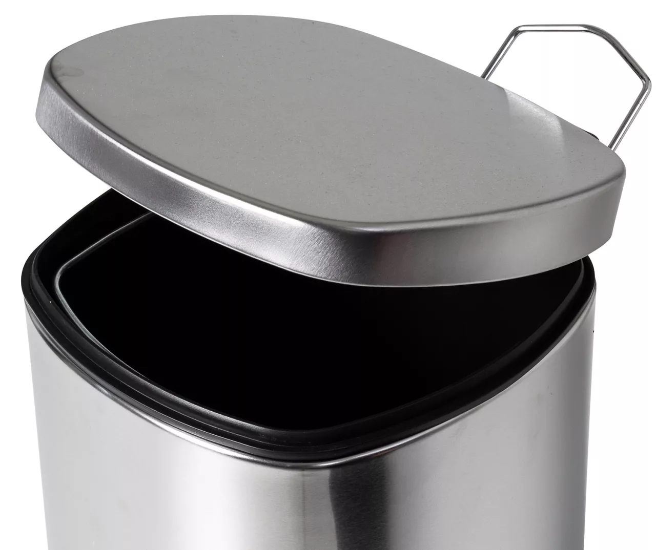 Designed to close softly and quietly, this sleek steel trash can from Honey-Can-Do makes it easy to keep your mess contained and out of sight. A step pedal lets you open the lid without using your hands, and the removable inner pail makes clean-up a breeze.