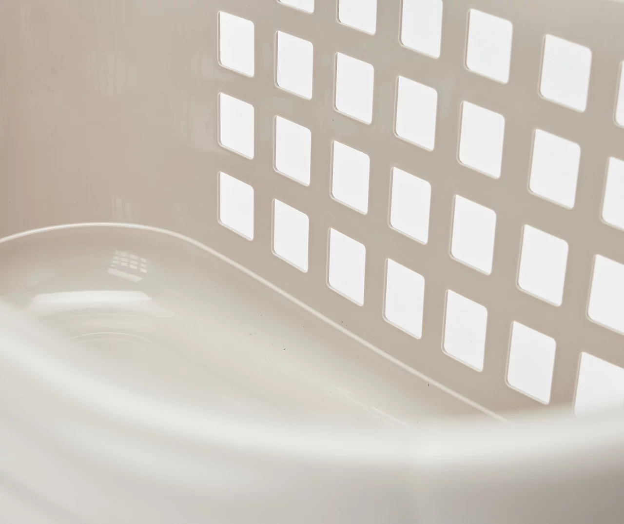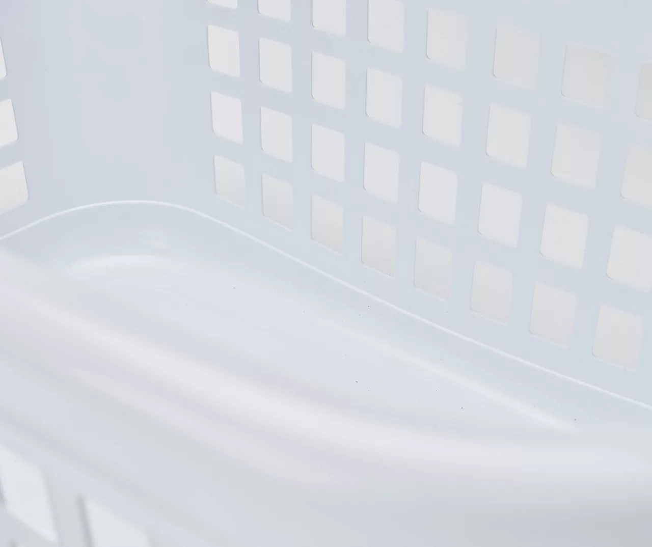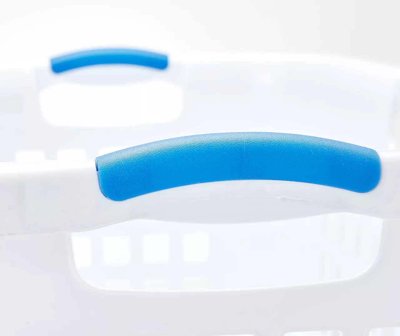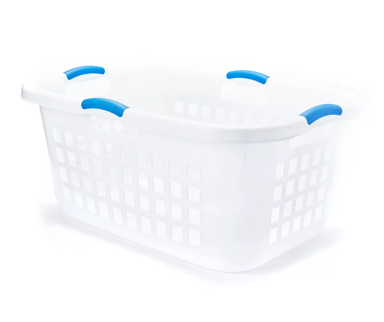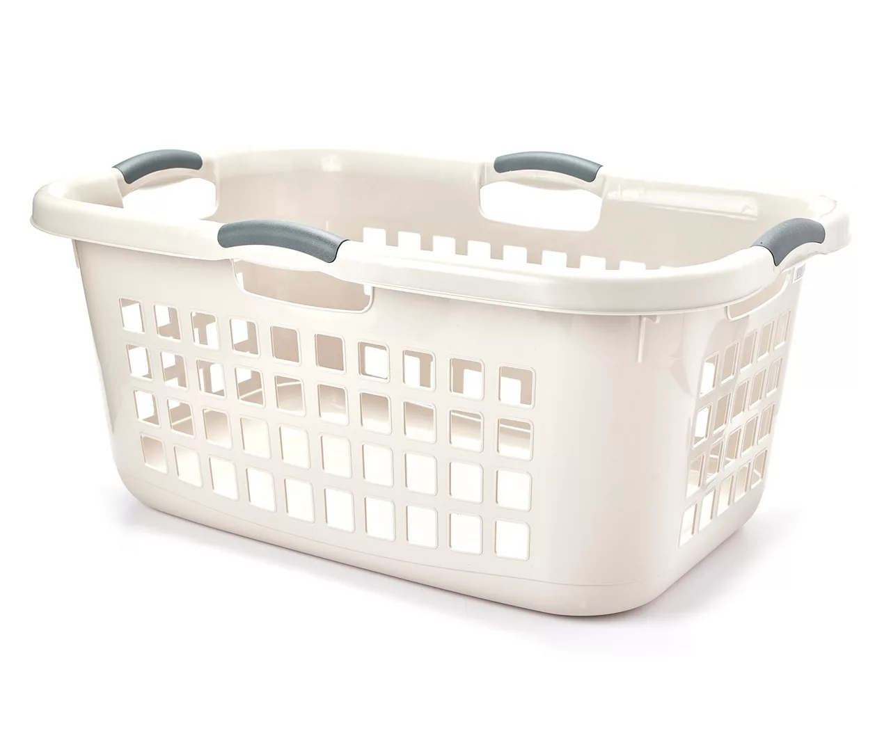 Sort and carry your laundry loads easily using this Sterilite basket boasting four contrast handles and ventilation holes. Each handle features a comfort grip design that allows you to easily carry clothing to and from the laundry room.