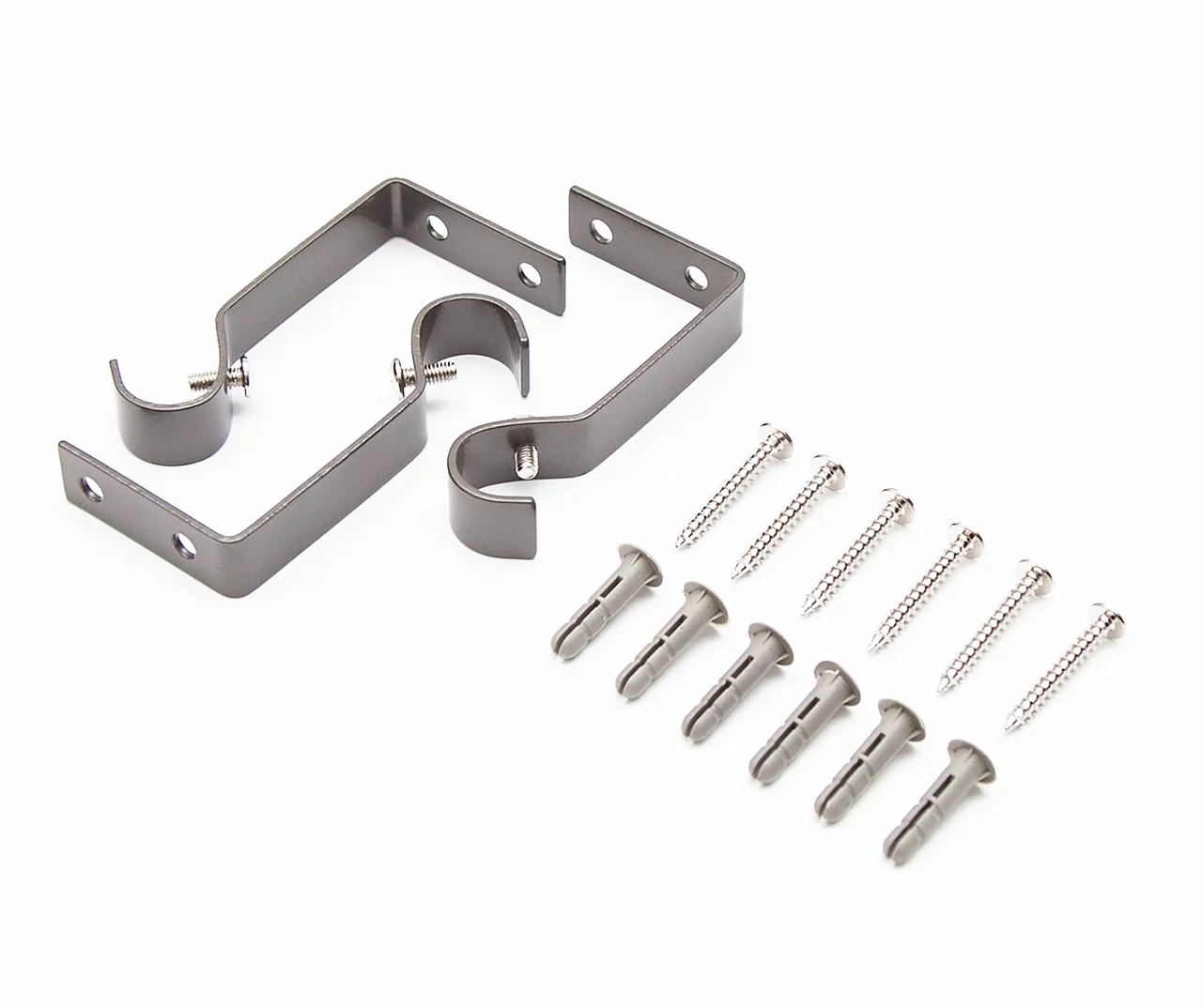 - Includes telescoping curtain rod with finials, 2 brackets, 1 center support, screws, drywall anchor and installation instructions