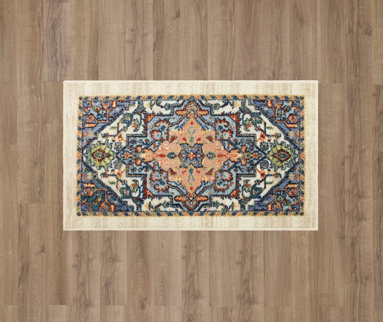 The Mohawk Home Tethys area rug features an ornamental design motif in a lovely bright color palette that is sure to perfectly accent any room. The low pile is created with Mohawk’s premium wear-dated nylon fiber for a soft touch and dependable durability. This rug is sure to make an elegant addition to a bedroom or other living space and the non-skid latex backing helps to keep things in place.