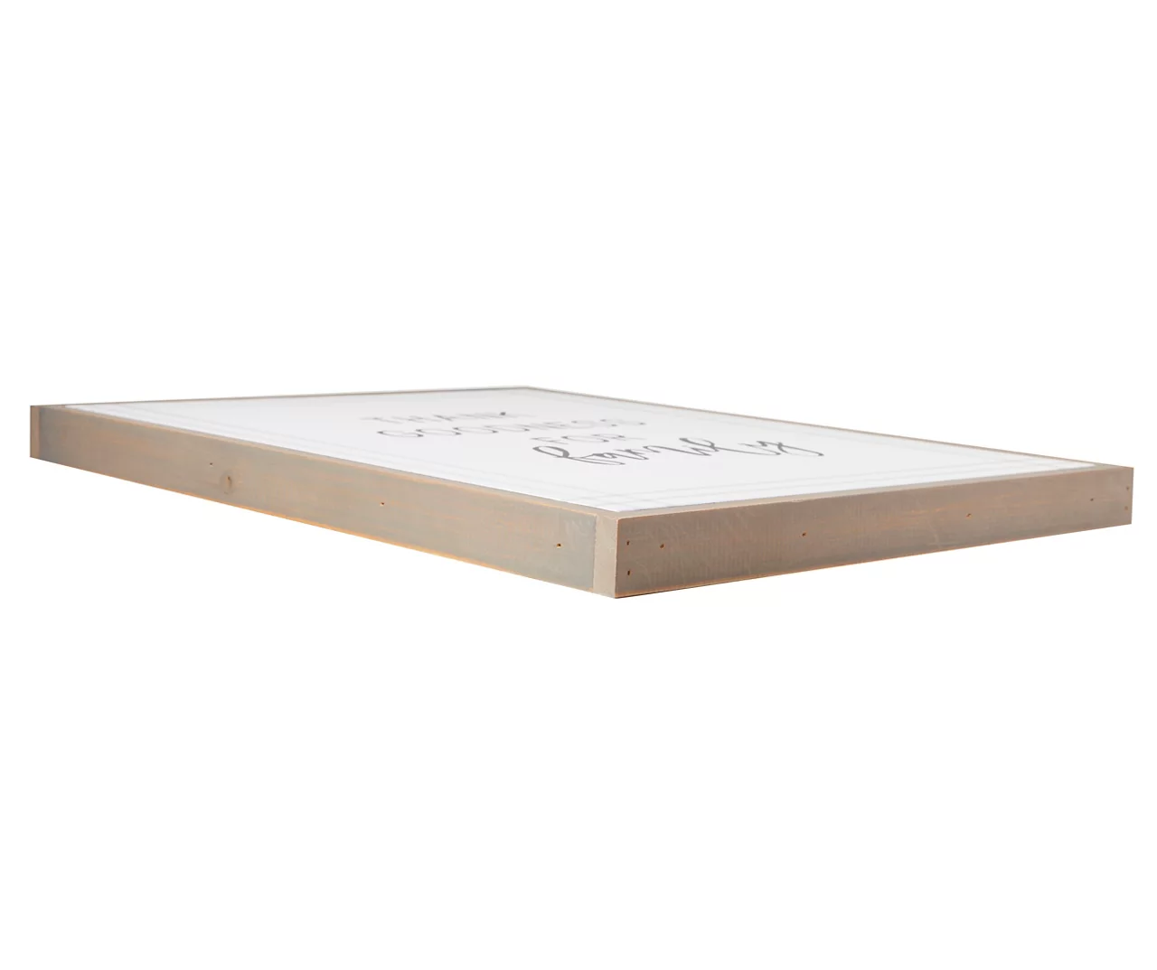 With a family-centric message, pale plaid accent border and gray-brown wood frame, this gallery-wrapped canvas is sure to bring charming warmth and modern typographic style to your walls. The frame comes ready to hang, and its neutral color palette easily complements most decor styles.