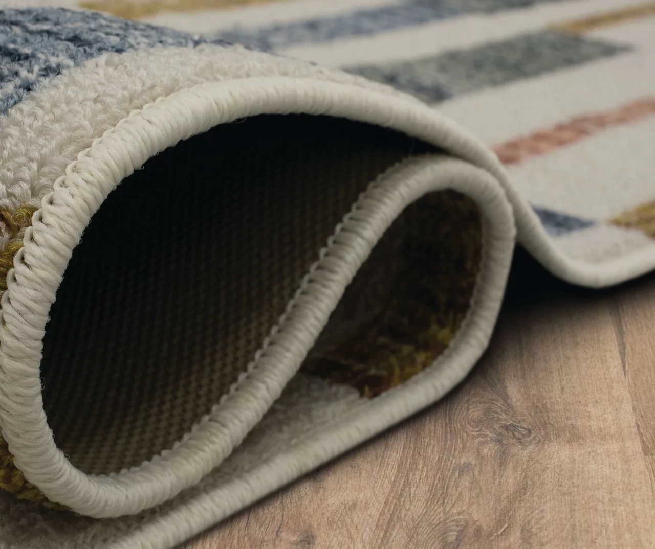 The Mohawk Home Tilton area rug features a modern color block design motif in a bold palette that is sure to complement any room. The low pile is created with Mohawk’s premium wear-dated nylon fiber for a soft touch and dependable durability. This rug is sure to make an elegant addition to a bedroom or other living space and the non-skid latex backing helps to keep things in place.