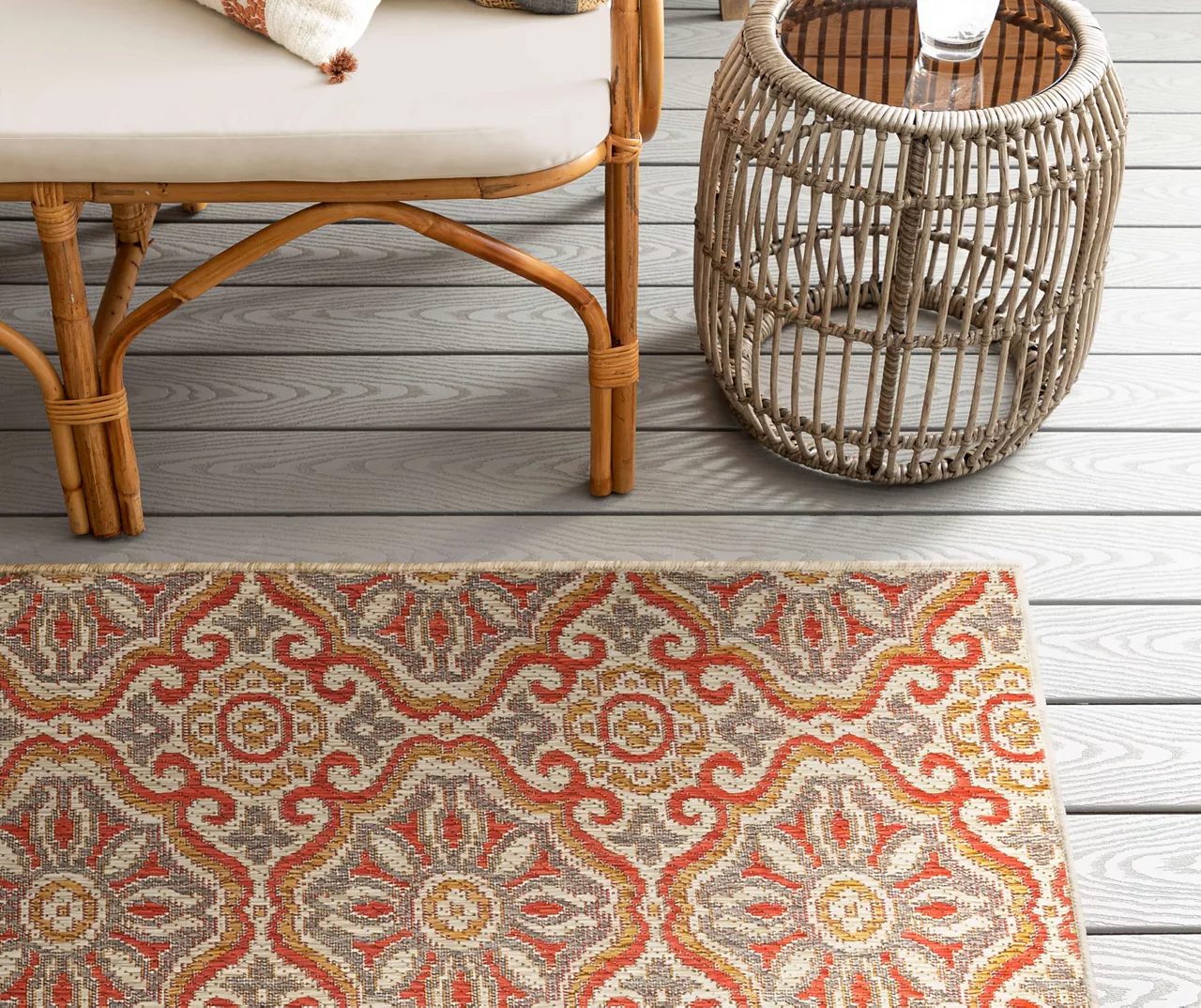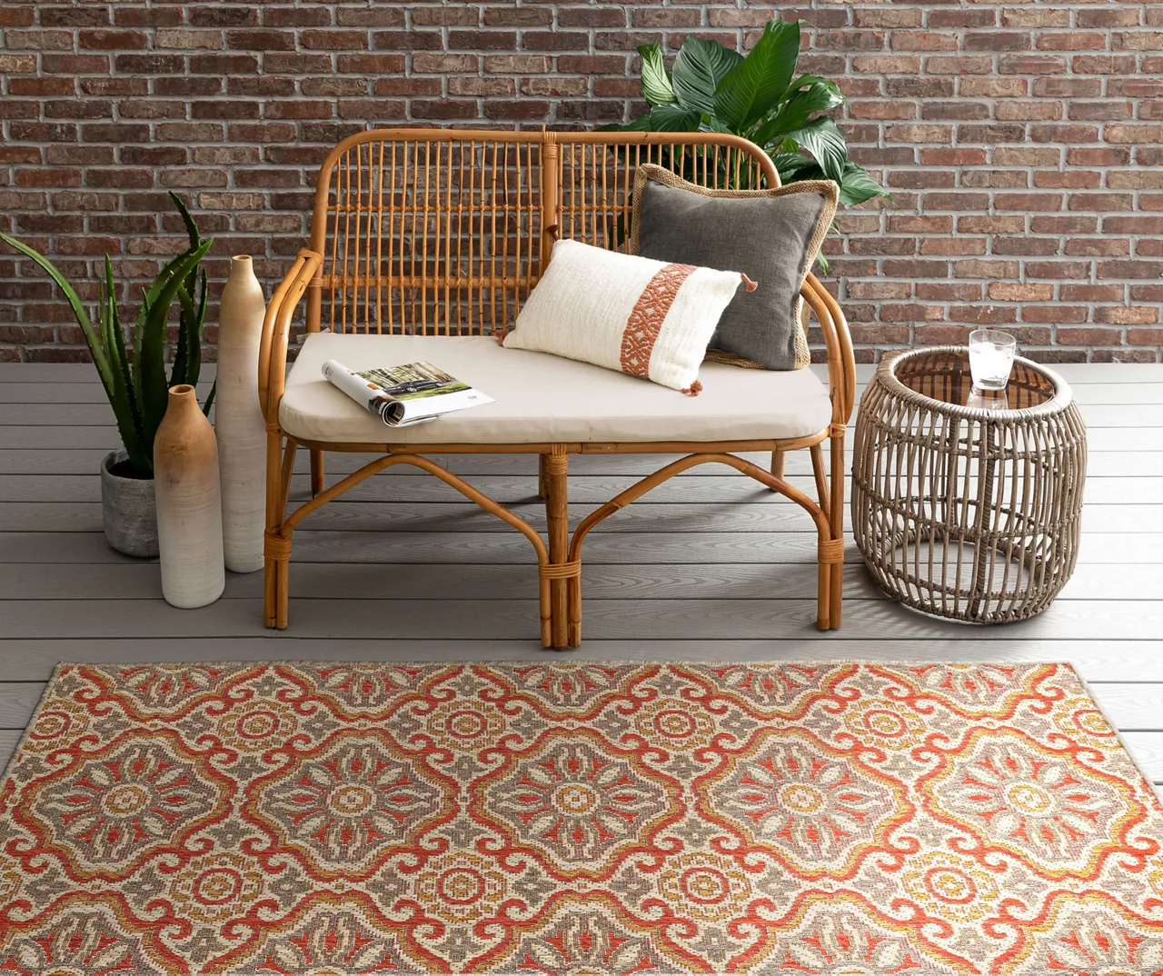 The Mohawk Home Waterside area rug features globally inspired bohemian design in versatile color palette combinations of brown, rust and tan. Made with all-weather olefin polypropylene yarn, this flatwoven area rug offers a detailed design, soft feel and dependable durability that works in both indoor and outdoor spaces. The resilient surface fibers are resistant to stains, fading and moisture, making it a great choice for high-traffic areas.