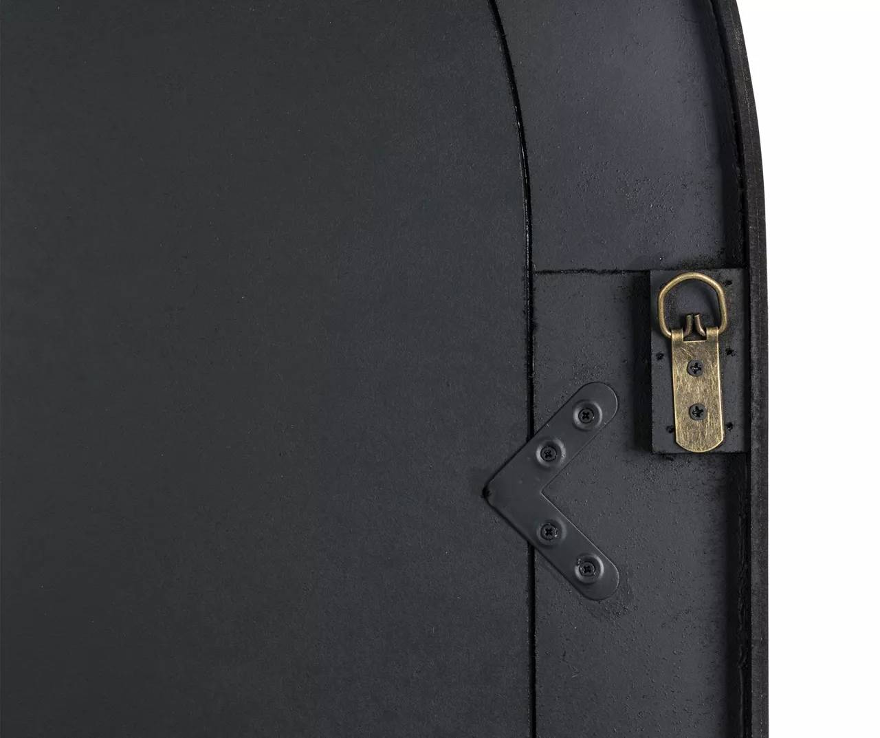 Flaunting a pointed arch frame with windowpane detailing in the center, this decorative mirror refreshes your room with modern architectural style that makes a statement, while providing a feeling of extra space and depth. Hook loops in the back make installation quick and easy.
