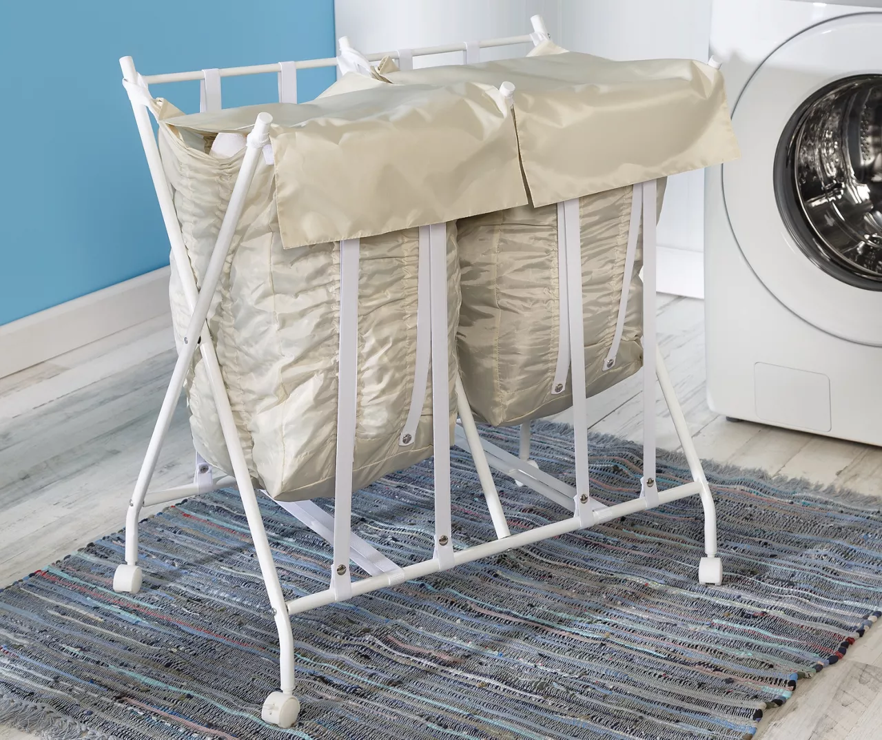 - Each hamper bag holds up to 2 loads of laundry
