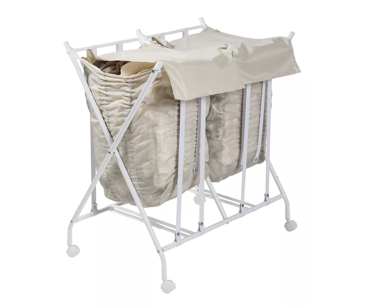 - Includes frame and 2 hamper bags