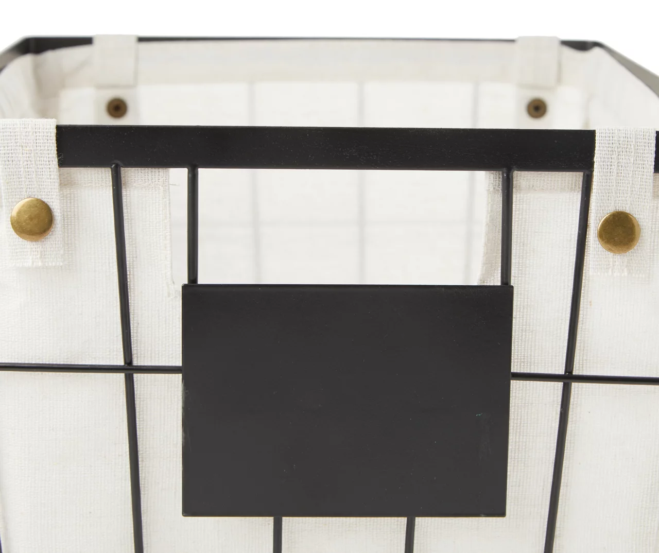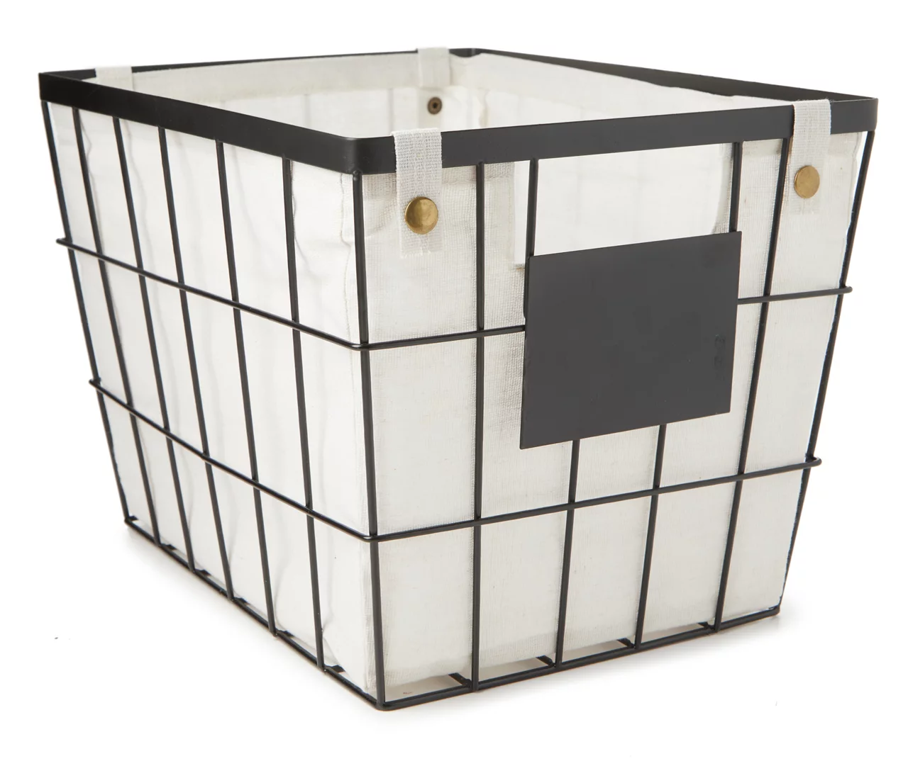 Keep your space organized with the addition of this wire-framed basket fitted with a removable cloth liner for industrial style with rustic flair. A chalkboard label on the front helps you keep track of the contents whenever they change.