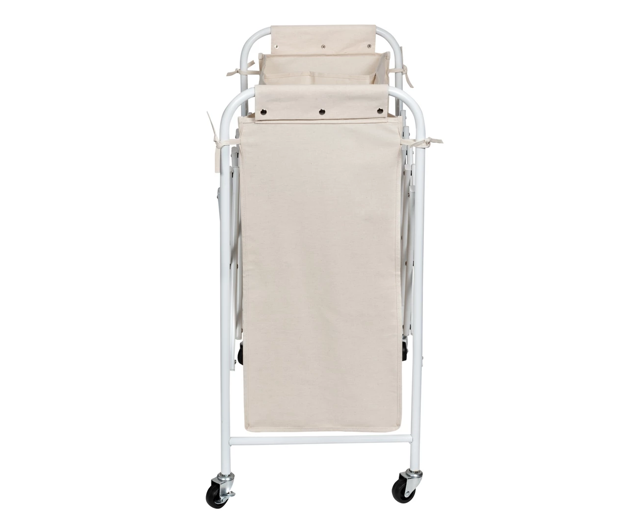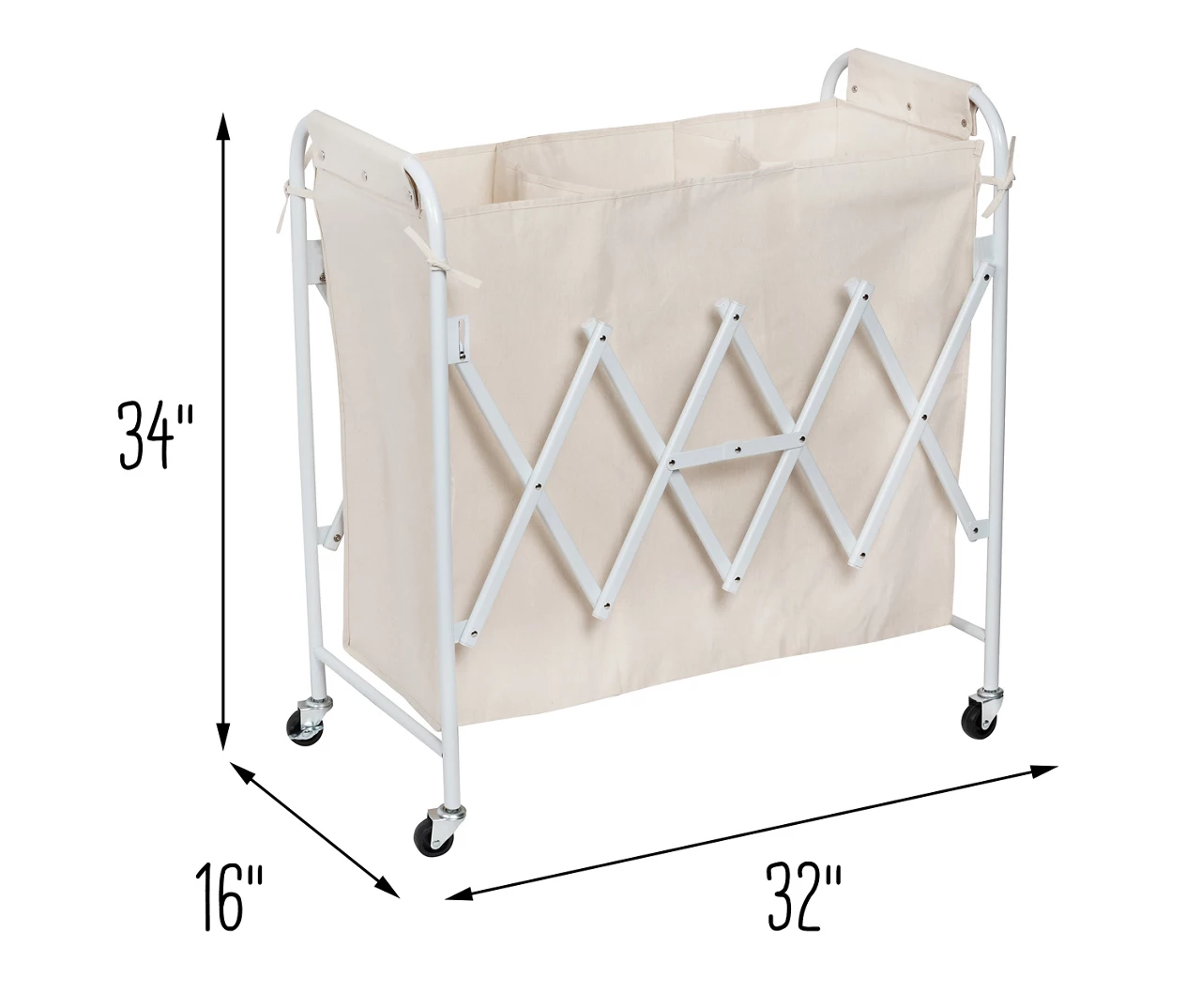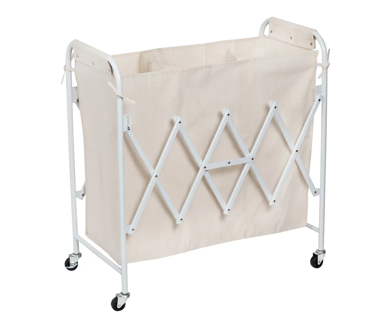 Store and organize your laundry loads with ease with this handy sorter from Honey-Can-Do. Three canvas bags sit in a sturdy accordion-style frame that folds compactly when not in use, and rolling caster wheels make it easy to move this sorter around as needed.