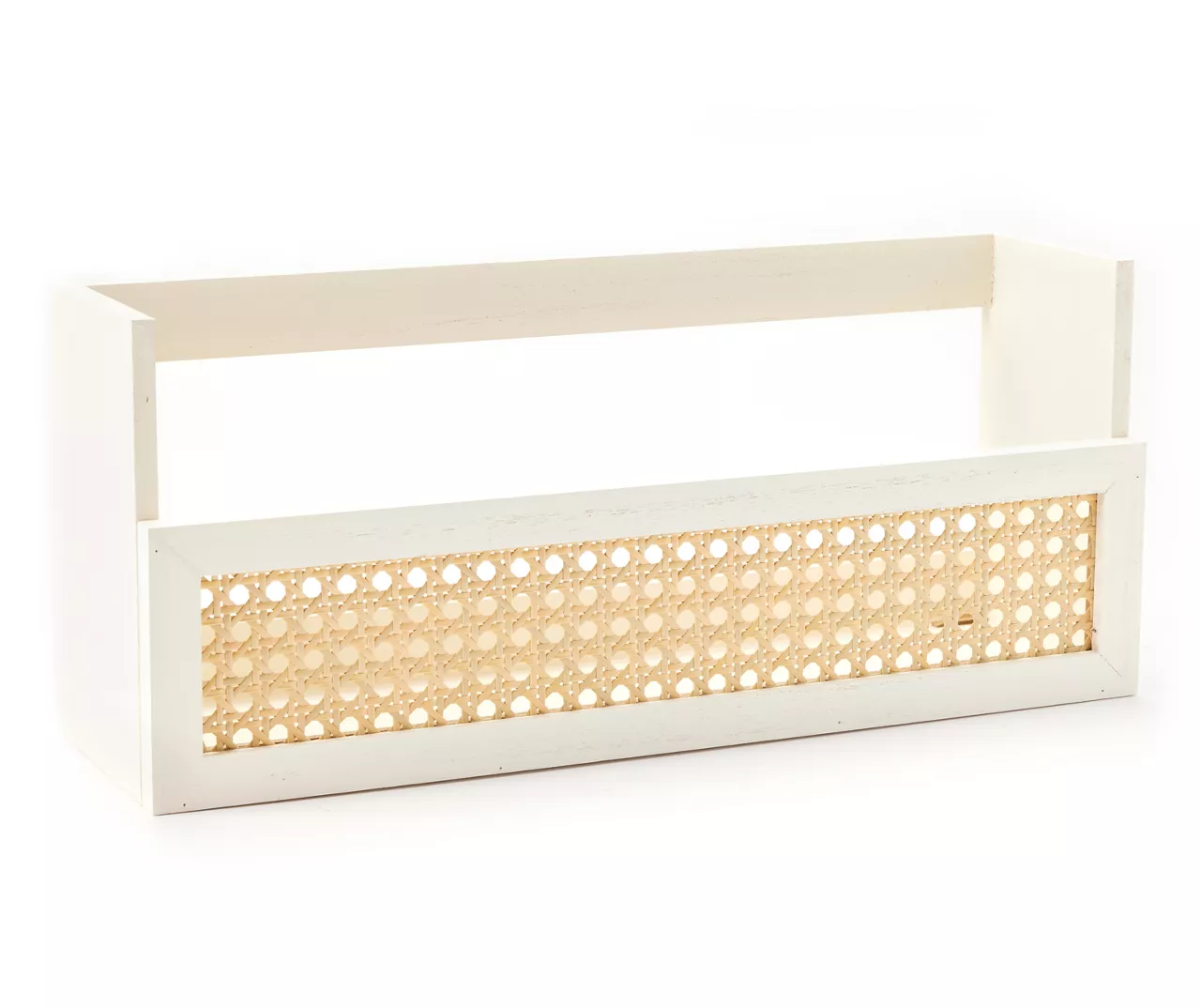 Organize your space and make a style statement with this charming wall shelf featuring a faux rattan panel fitted onto a white wood frame. The neutral palette makes it easy to complement and coordinate with your exisiting décor.