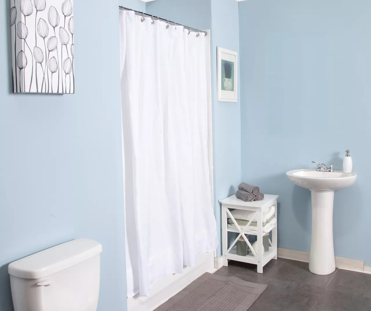 The Kenney® Fabric shower liner is made of 100% polyester, making it PVC-free and odorless. While made of fabric, it is water repellant, so water stays in your bathtub and off of the floor. The liner features 12 reinforced hang holes to prevent tearingfrom shower hooks and rings. It is machine washable for easy cleaning as needed.