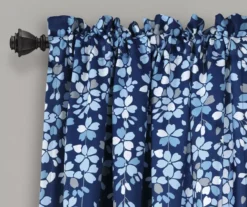 Weeping Flowers Navy Room-Darkening Rod Pocket Curtain Panel Pair, (84″)