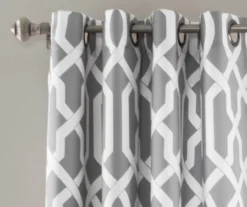 Edward Trellis Gray Room-Darkening Grommet Curtain Panel Pair, (63″)